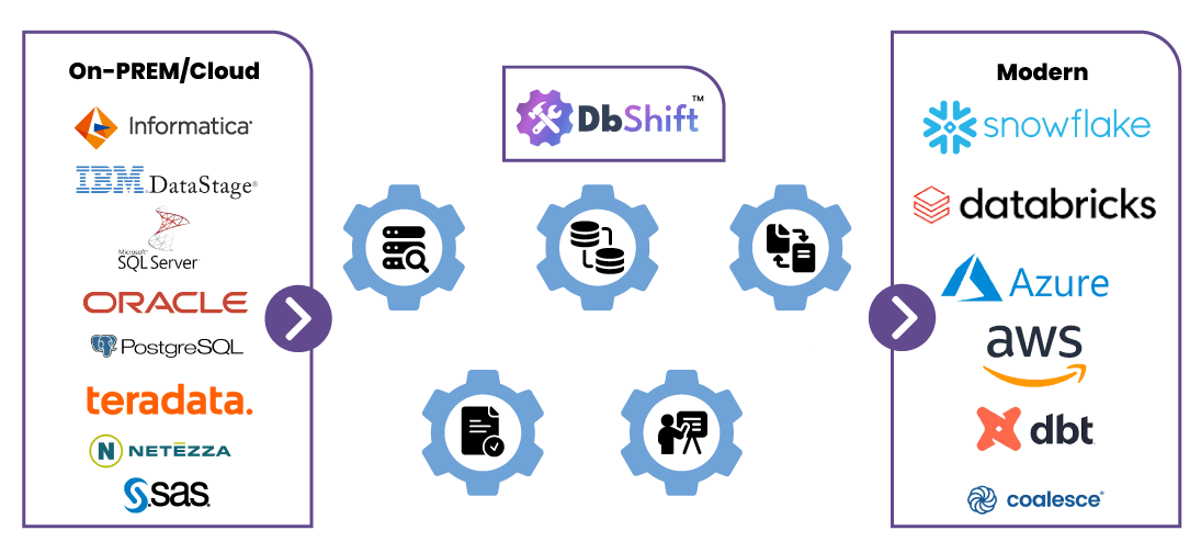 DBShift™ is our AI-driven migration accelerator that automates legacy-to-modern data platform migrations—delivering seamless, end-to-end conversion with 100% accuracy. It empowers organizations to modernize faster and build AI-ready data foundations by automating testing, validation, and dataset migration—achieving 95% automation and up to 70% risk reduction.